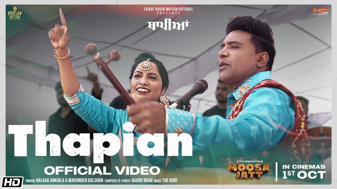 Thapian Lyrics from album Moosa Jatt: The “Thapian” song is from the movie “Moosa Jatt” starring Sidhu Moose Wala. This latest Punjabi song is sung by Balkar Ankhila and Manjinder Gulshan. Thapian Song has music by The Kidd while Babbu Brar has written the Thapian lyrics for Moosa Jatt.